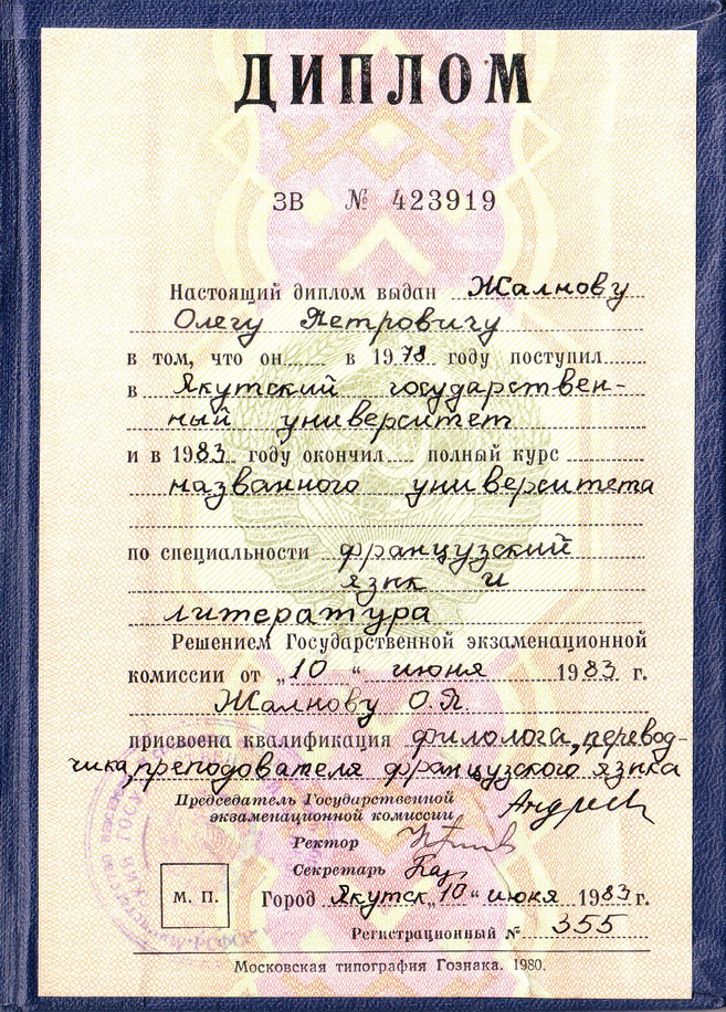РЕЗЮМЕРодился 04.01.1961г. в Якутской АССР в городе Мирный. В 1983г. окончил Якутский государственный Университет им. М.К. Аммосова по специальности французский язык и литература. Присвоена квалификация филолога, переводчика, преподавателя французского языка. Педагогический стаж – 26 лет. Учитель высшей категории. В данной школе работаю с 2001 года учителем французского языка, как второго иностранного. | ||||||